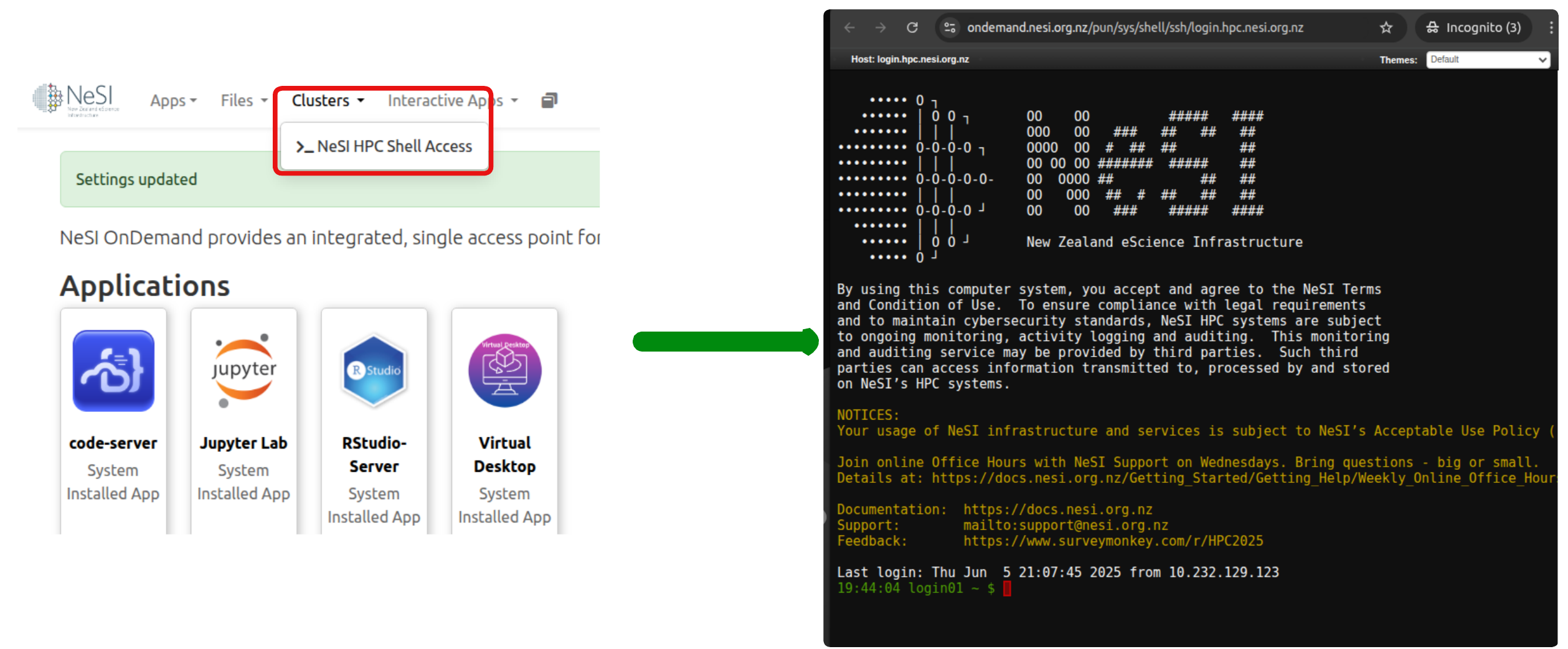 Connect to OnDemand: https://ondemand.nesi.org.nz.